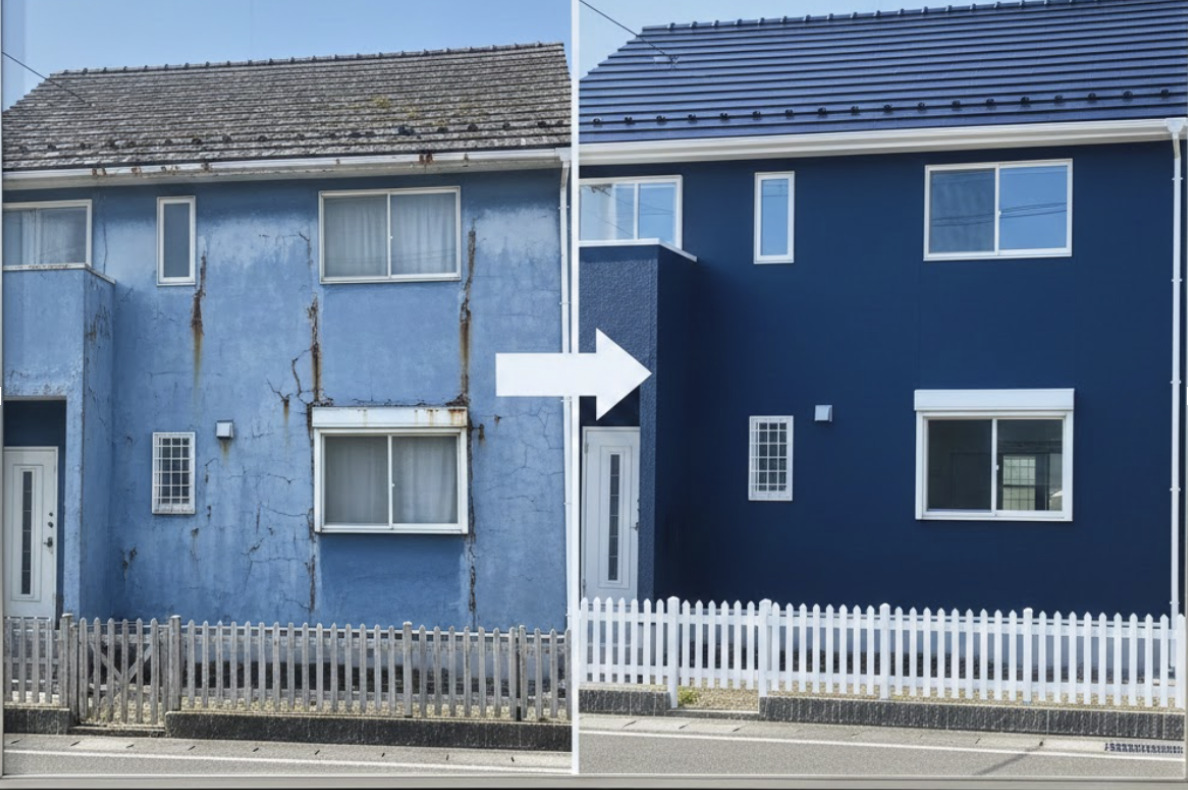 塗装技術の高さを、お客様に最も直感的に伝えることができるのが、「施工前・施工後(ビフォーアフター)」の比較写真です。効果的な見せ方のポイントは、「同じ場所から、同じ角度で撮影する」ことです。天候や時間帯もできるだけ揃えることで、塗装による変化がより劇的に、そして分かりやすく伝わります。