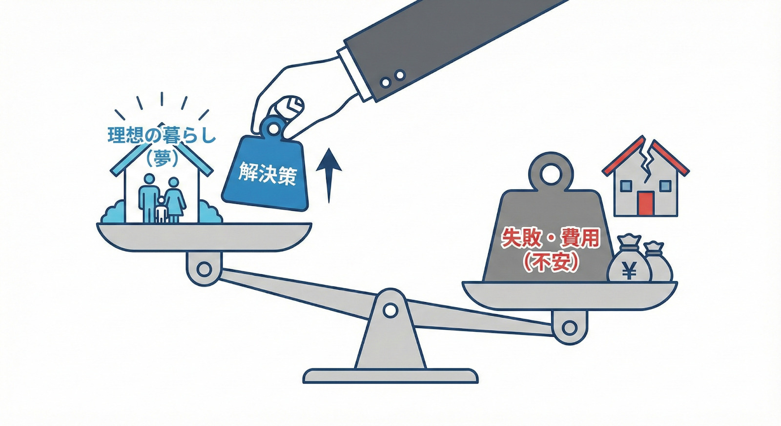 顧客は「今より快適に暮らしたい」「見た目も良くしたい」という期待を持つ反面、「高い費用をかけて後悔しないか」「思い通りに仕上がるのか」といった強い不安も抱えています。
