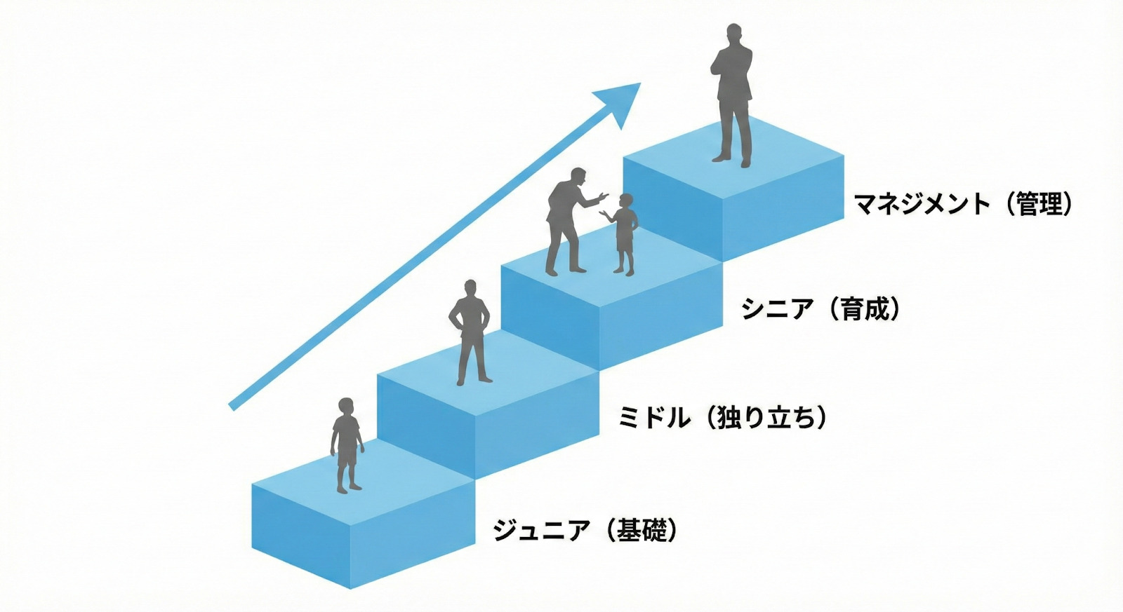 若手が育ちにくい理由の一つに、「キャリアの先が見えない」という問題があります。スキル教育だけでなく、将来どんな役割を目指せるのかを示す仕組みを整えることで、働く意欲を保ちやすくなります。
